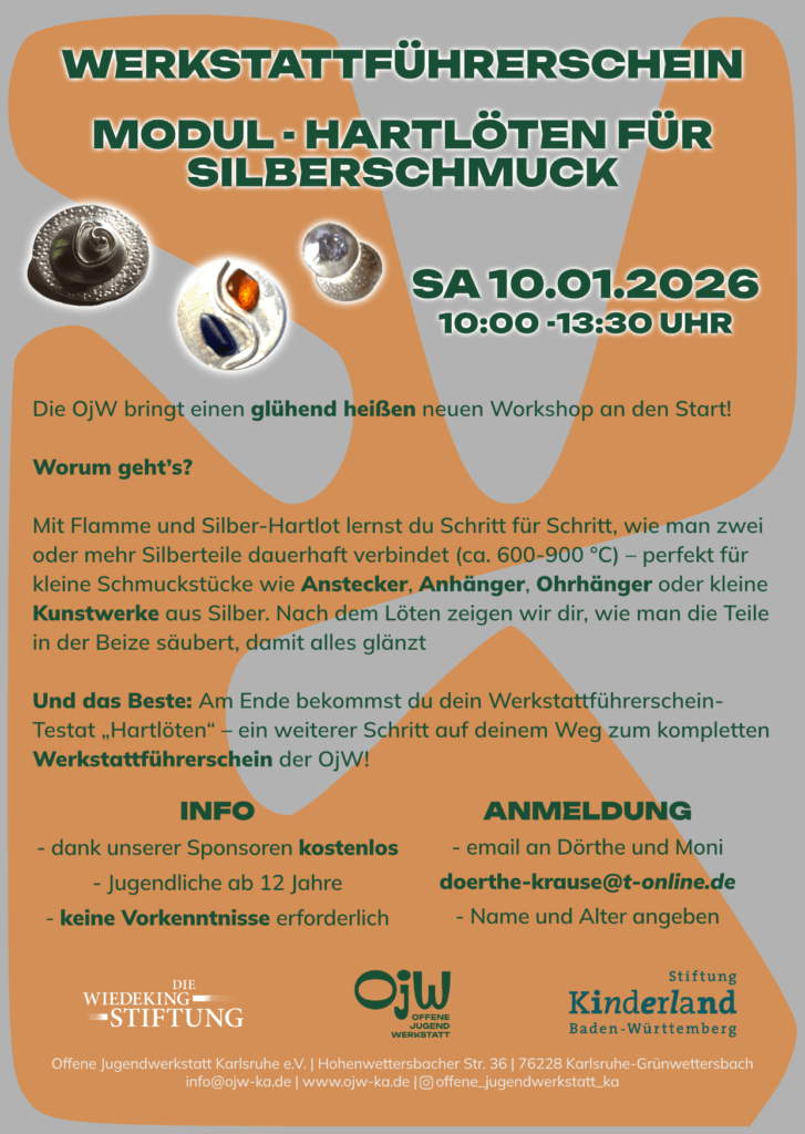 Mit Flamme und Silber-Hartlot lernst du Schritt für Schritt, wie man zwei oder mehr Silberteile dauerhaft verbindet(ca. 600–900 °C) – perfekt für kleine Schmuckstücke wie Anstecker, Anhänger oder Ohrhänger.