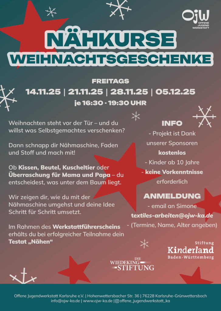 Die OjW macht Ferien vom 10. August bis zum 12. September bleibt die Werkstatt geschlossen Am Samstag den 13. September